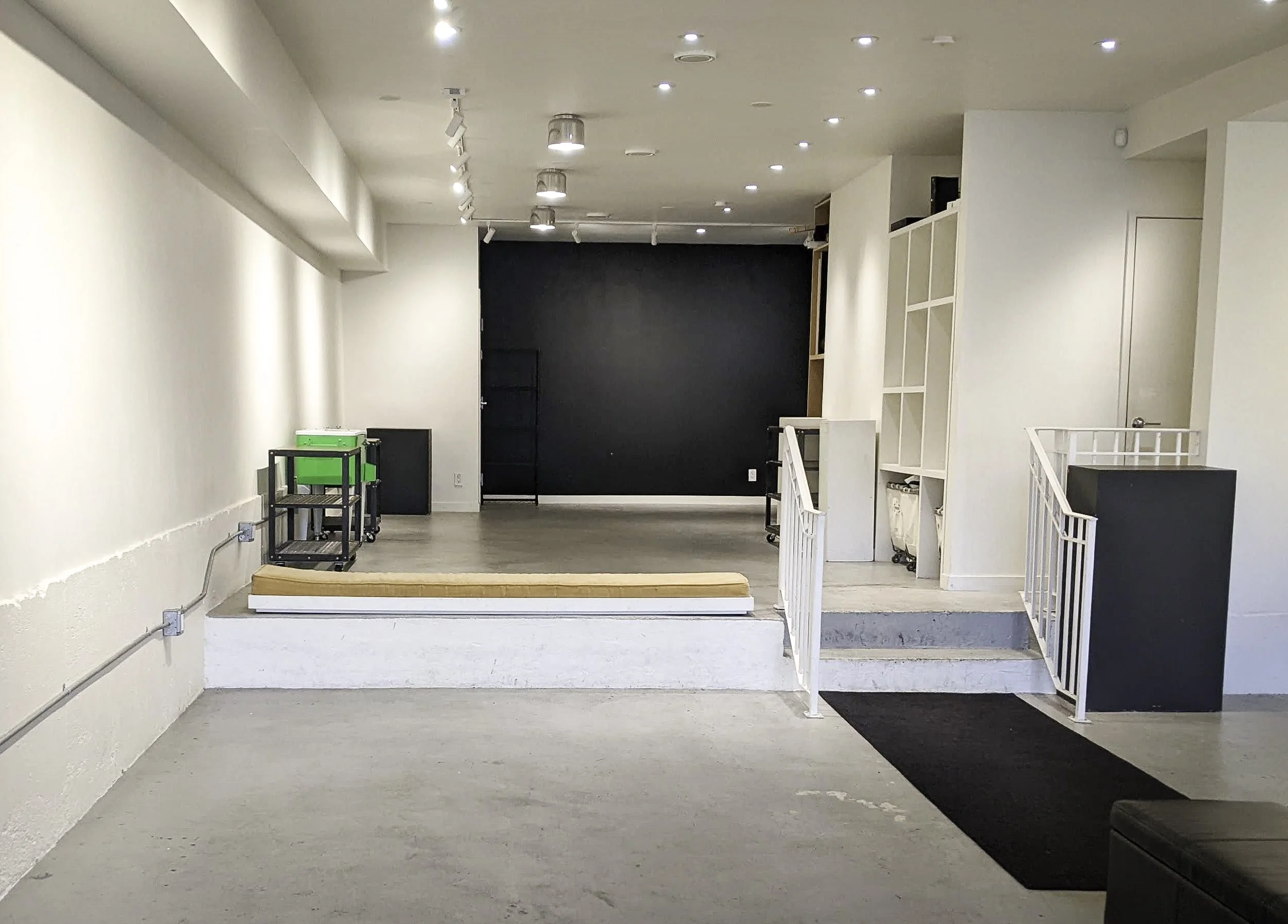 This space is approximately 1,600 sq ft and can comfortably host 80 people, with assorted seating for 65 people. The gallery is ideal for small pop up events, meetings/conferences, photo/film shoots, private events, theater rehearsals, and parties.